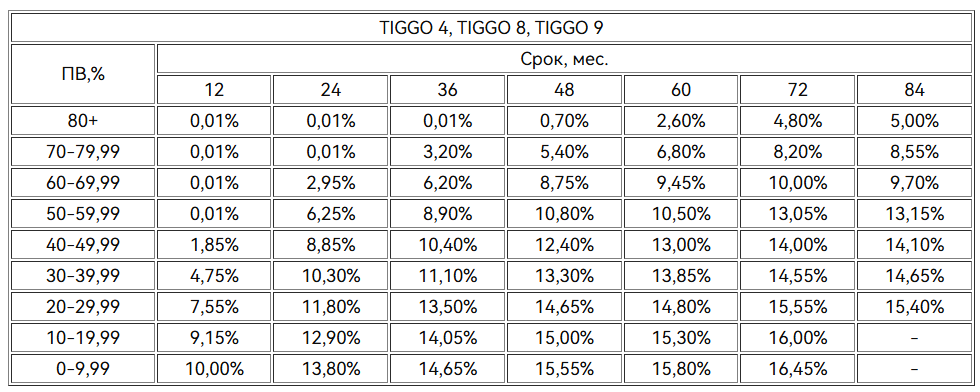 *0,01% - процентная ставка по акционной программе кредитования «Chery Direct NEW Gold» для владельцев «Карта Халва» (далее – акционная программа) по продукту «АвтоСтиль-Особый» для новых автомобилей марки ARRIZO 8, TIGGO 4, Tiggo 4 ПРО, Tiggo 8, Tiggo 8 ПРО, Tiggo 8 ПРО МАКС, TIGGO 9 2024-2025 года выпуска. Параметры акционной программы: срок кредита –12, 24, 36, 48, 60, 72, 84 мес.; сумма кредита - от 300 000 до 9 000 000 руб.; полная стоимость кредита на момент оформления Договора – от 0,010% до 22,441% годовых, процентная ставка – от 0,01 до 16,45% годовых, первоначальный взнос – от 0% от цены приобретаемого автомобиля (при сроке от 73 мес минимальный ПВ от 20%). Процентная ставка 0,01% действует при сроке кредита 12 мес. и первоначальном взносе от 30 %, при сроке кредита 24 мес и первоначальном взносе от 60%, при сроке кредита 36 месяцев при первоначальном взносе от 70%, при сроке кредита 48-60 месяцев и первоначальном взносе от 80%, Процентная ставка по кредиту, установленная акционной программой, действует при совершении в каждом полном отчетном периоде по «Карта Халва» в течение действия кредитного договора от 10 покупок на общую сумму от 20000 руб. При несоблюдении условий акции – действующая процентная ставка увеличивается на 6 процентных пунктов. Срок акции – с 29.01.2026 г. по 31.12.2026 г. Информация об организаторе акции, о правилах ее проведения, иные условия акции указаны в Паспорте акции «Автокредит с Халвой» по ссылке https://sovcombank.ru/credits/auto (вкладки «Кредитные программы»/»Акции»). В залог предоставляется приобретаемый автомобиль. Кредит предоставляется ПАО «Совкомбанк» (генеральная лицензия Банка России № 963 от 05 декабря 2014 года). Оценивайте свои финансовые возможности и риски.